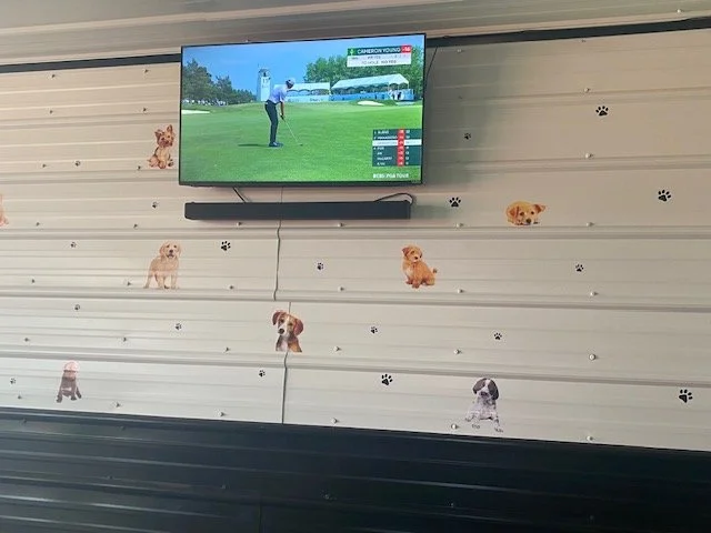 Five of our kennels are equipped to allow the dogs to go outside in the fence kennel through a doggie door. Our outside portion of the kennels are 5×8.