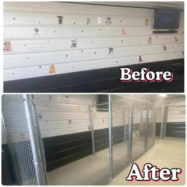 Complete set up for the inside portion of the kennel. The inside portion of the kennel is 5×5.